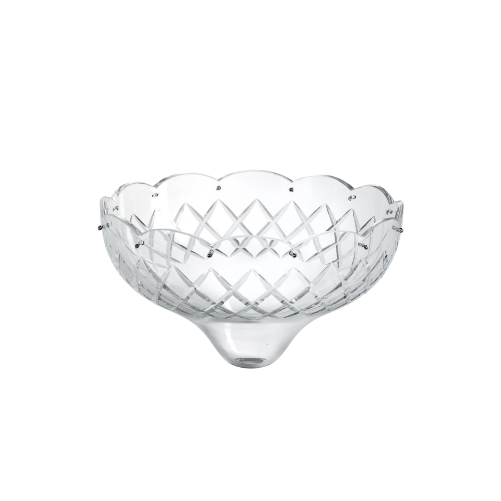Bobeches, also known as cups under the arms, serve as decorative elements and catch drips from pendants. They are hand-blown and shaped, with optional special edges and holes for custom designs.